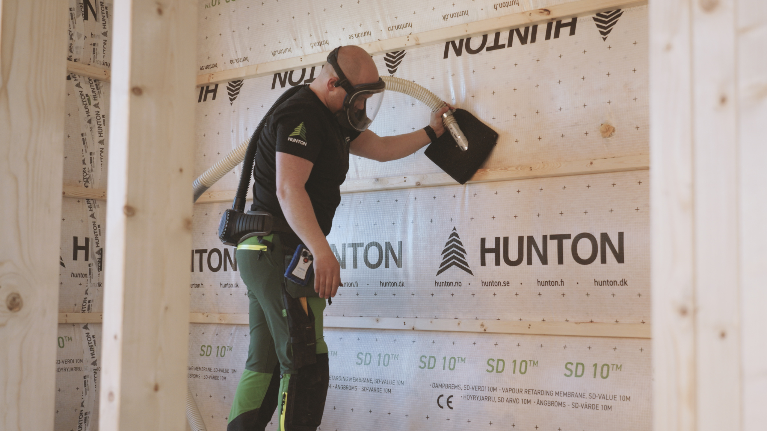 – Säästät lähes 36 työtuntia per 200 m² seinää, kun valitset puhalluseristyksen käsin eristyksen sijaan, sanoo Huntonin myyntipäällikkö Hans Björklund.